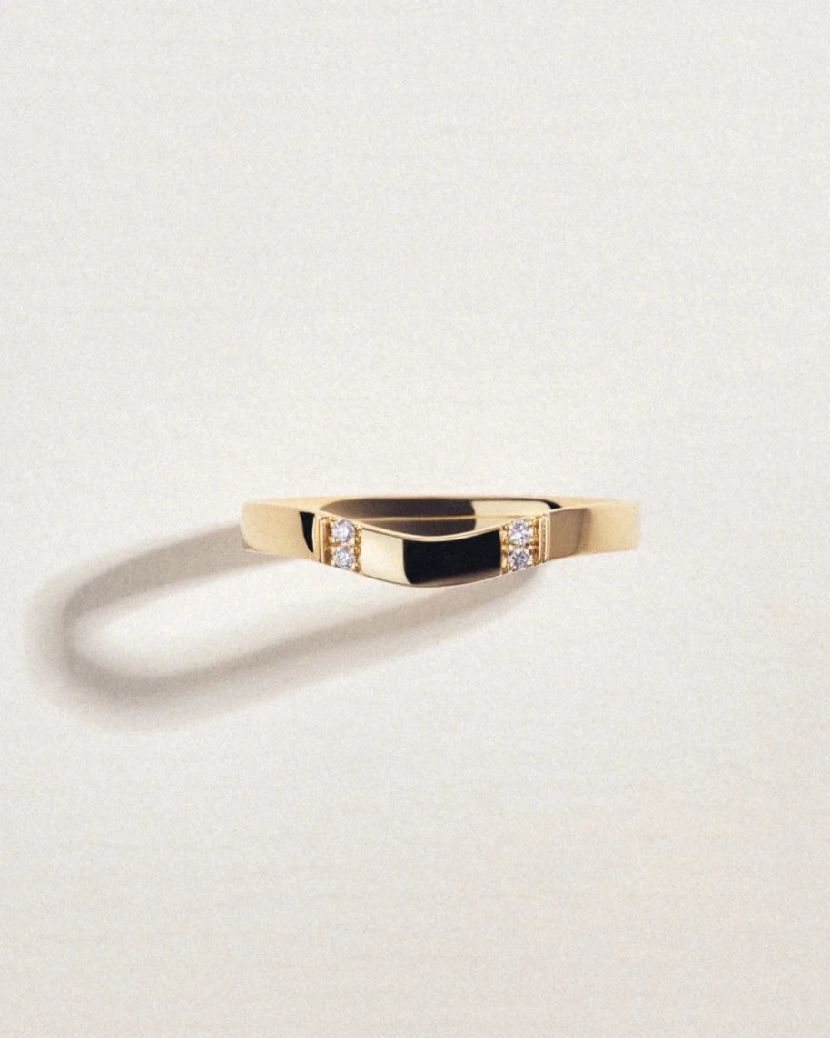 Taking our beloved curve design to the next level, we swapped the black and white gems from the Golden Crest Ring for something a bit more twinkly: DIAMONDS that catch the light just right. We want to channel the same vibe as the poem ”The Crescent Moon” by Amy Lowell through the Golden Crest Ring. Read more